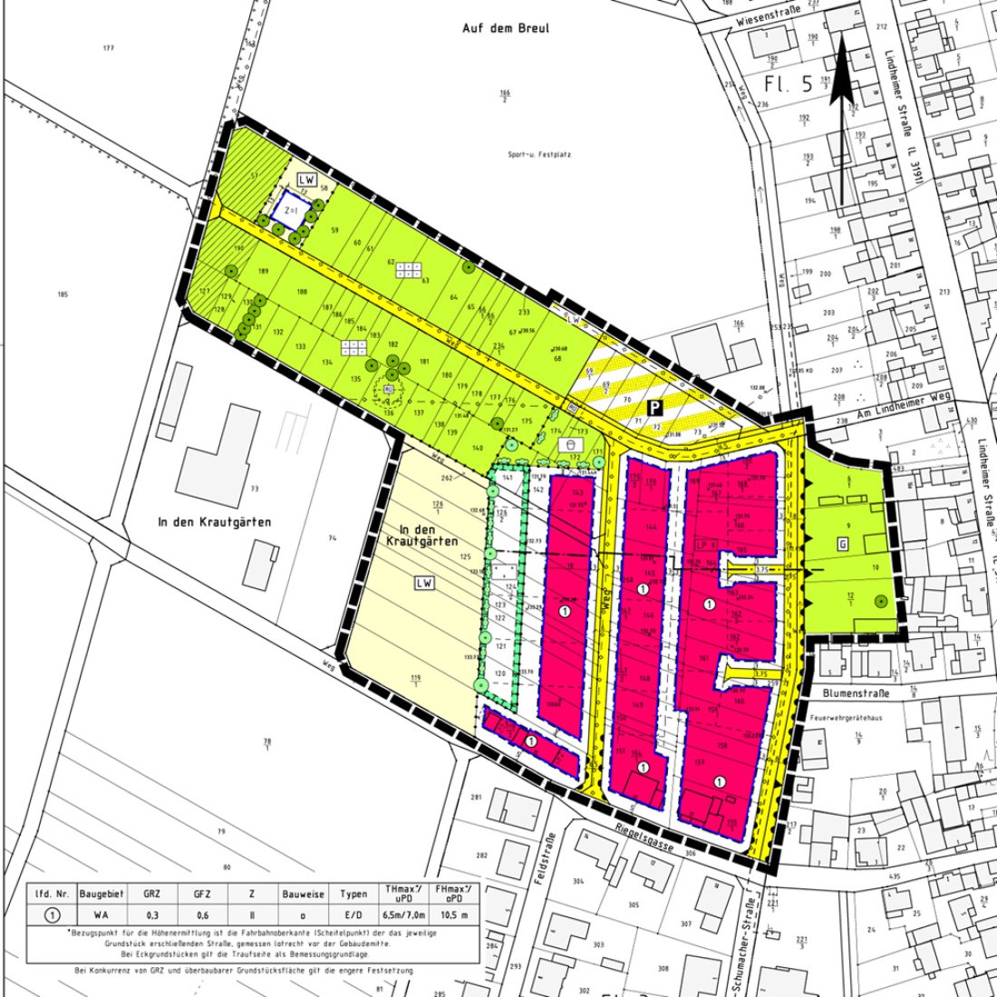 Das Baugebiet "In den Krautgärten" entsteht am nordwestlichen Ortsrand des Ortsteils Hainchen (1.300 Einwohner). Das Allgemeine Wohngebiet hat eine Fläche von rd. 2 ha; hier werden 25 Grundstücke zur Bebauung mit Einzel- und Doppelhäusern erschlossen. Das Baugebiet schließt sich zur einen Seite direkt an die bestehende Bebauung und zur anderen an ein Kleingartengebiet und ein Naturschutzgebiet an. Während und auch nach dem Bau finden Bauherren fachgerechte Beratung und Begleitung, zum Beispiel nach den Vorgaben des Bebauungsplans oder in der Energieberatung durch entsprechendes Personal der Gemeindeverwaltung. Die Preise für ein erschlossenes Grundstück liegen zwischen 145 €/m² und 165 €/m² (für Familien mit Kindern gibt es einen Preisnachlass).