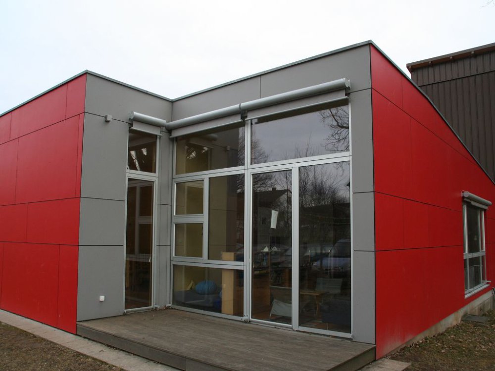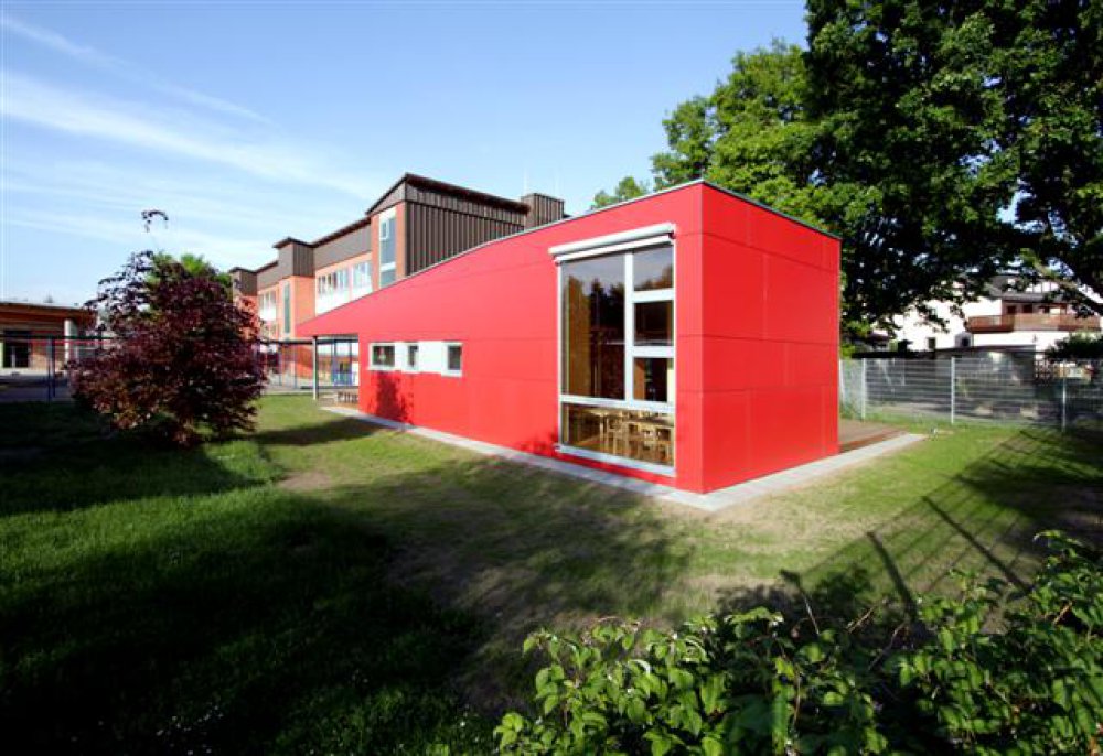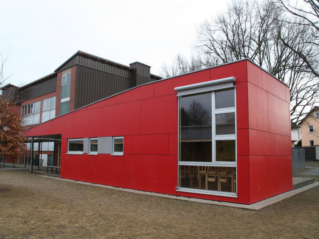 Für die Nachmittagsbetreuung der Grundschulkinder wurde ein Hort als Anbau an die bestehende Schule realisiert.
